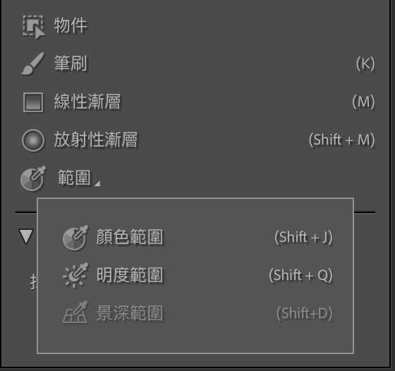 最新版本的LR有一項功能,針對照片局部建立濾鏡。我們首先選擇濾鏡,再選擇明度範圍。在照片亮點點一下。留意畫面變紅的地方就是選取了的高光。